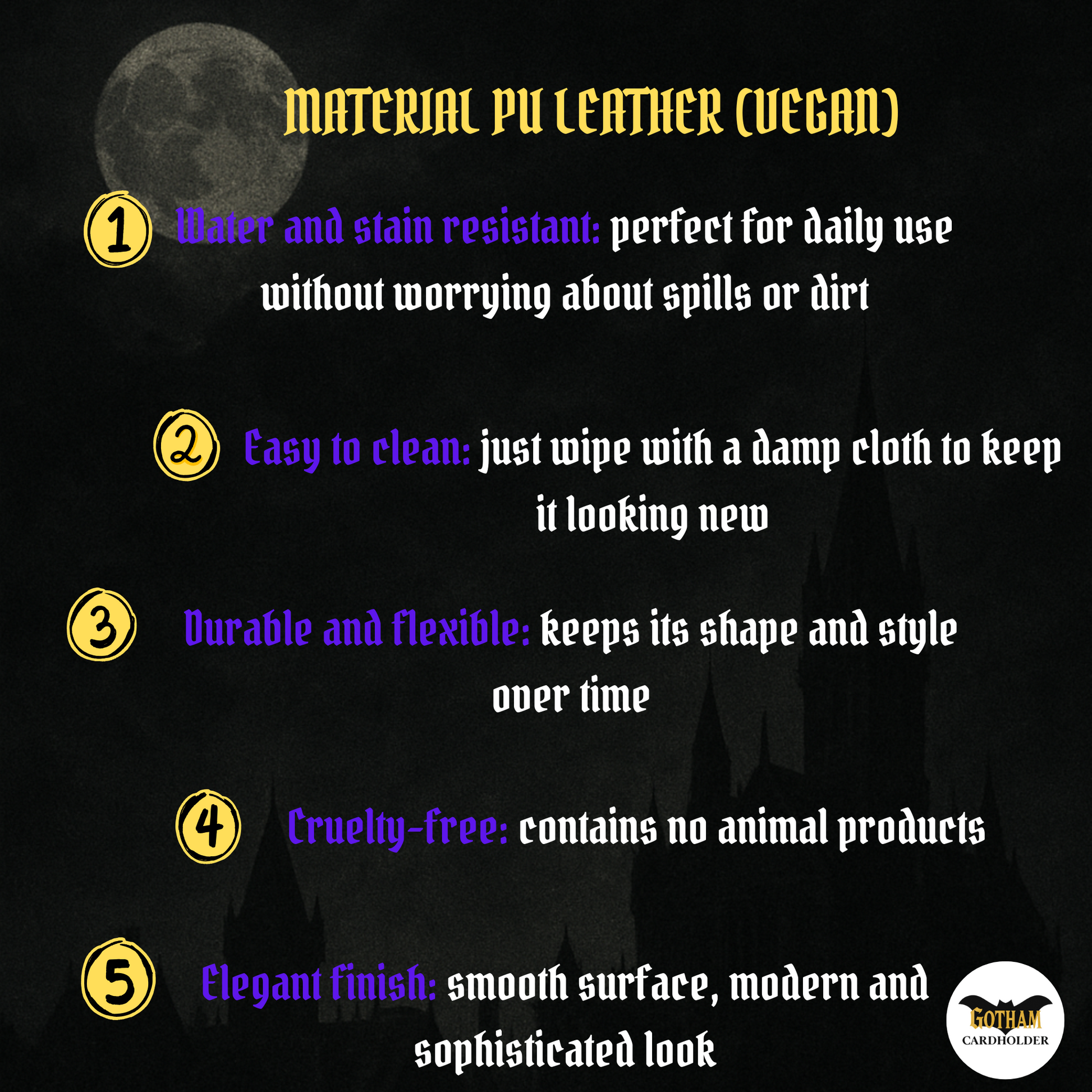 A: Our cardholder is made from high-quality, durable PU leather — easy to clean, long-lasting, and 100% vegan.